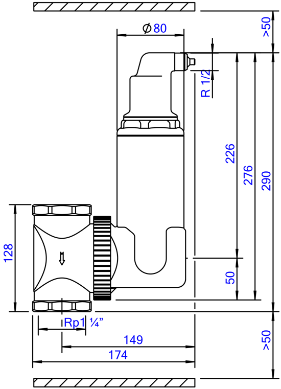 • Geen gevaar voor droogkoken via de luchtafscheider