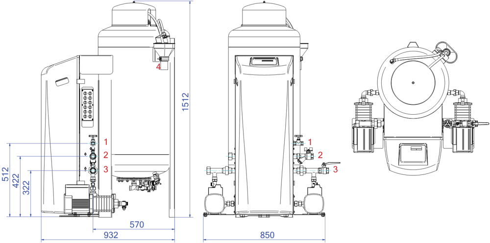 - Wordt geleverd met 6 mogelijke vatvolumes: 45, 75, 125, 200, 300 of 500 liter