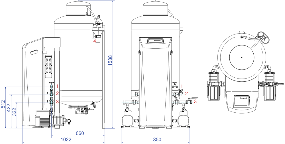 - Er kunnen nog twee drukloze expansievaten worden toegevoegd