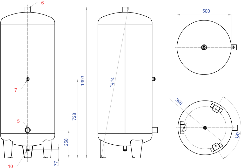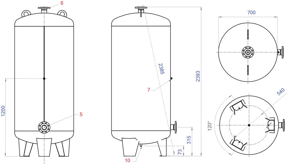Voorschakelvaten P max. 10 bar / T max. 110ºC